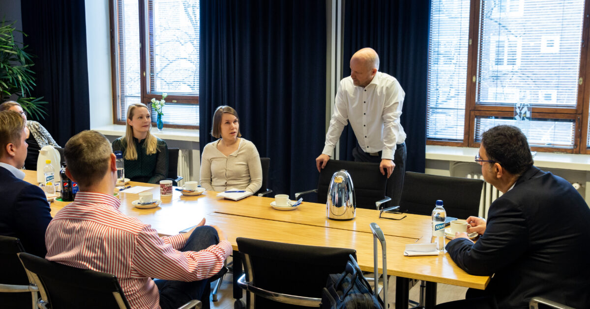 Artikkelikuva yllä: professori Daron Acemoglu (sittemmin taloustieteen nobelisti 2024) yhteistyöpalaverissa Etlassa vuonna 2019. Pöydän ääressä istumassa (vas.) tutkijat Hanna Virtanen, Krista Riukula ja Nelli Valmari. Toisella puolella pöytää tutkimusjohtajat Tero Kuusi ja Jyrki Ali-Yrkkö. Seisomassa toimitusjohtaja Aki Kangasharju.