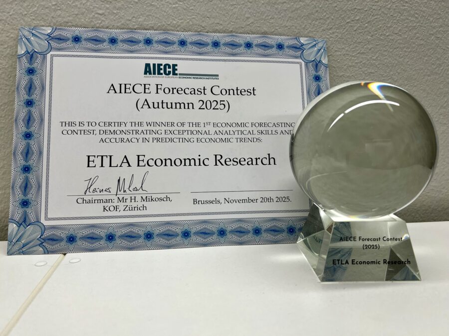 Etlan vanhempi tutkija Ville Kaitila on hiljattain voittanut AIECE:n kristallipallon ennustettuaan tarkimmin öljyn barrelihinnan kahden viikon päähän. Kisassa oli mukana yhteensä 20 osaanottajaa.