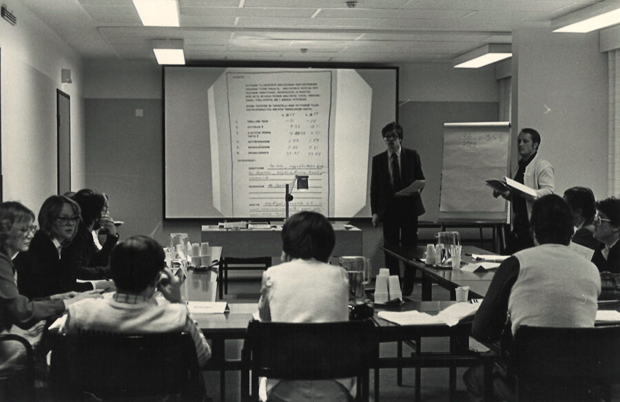 Etlan neuvotteluhuone 1970- ja 2020-luvuilla