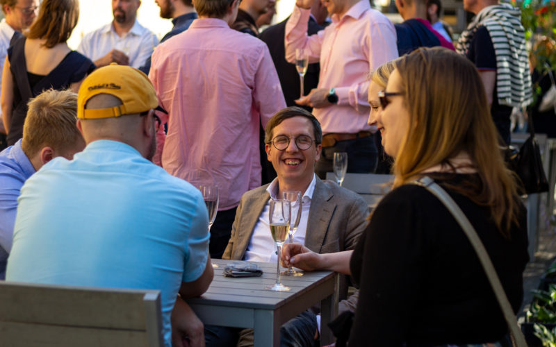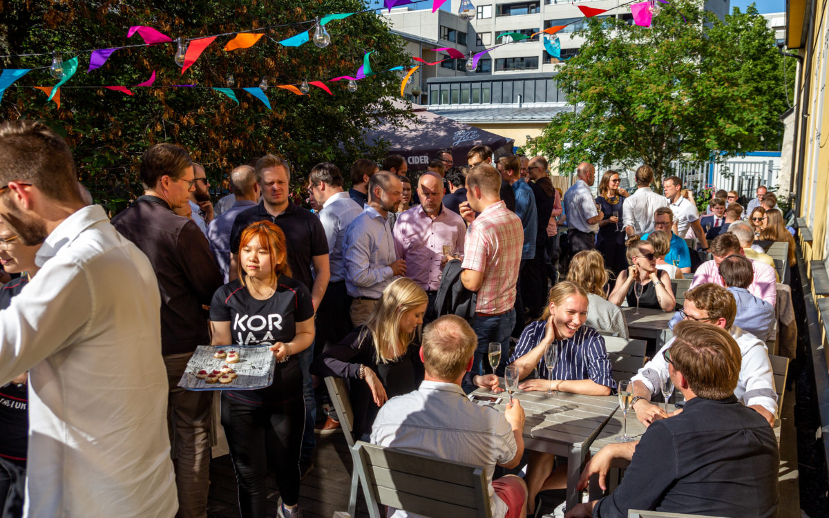 Etlan toimitusjohtaja Aki Kangasharju toivotti liki sata juhlavierasta tervetulleeksi Korjaamon aurinkoisella ja paahteisella terassilla. Ruokailun aikana kuultiin lyhyitä puheenvuoroja ja valmistauduttiin illan ohjelmaan.